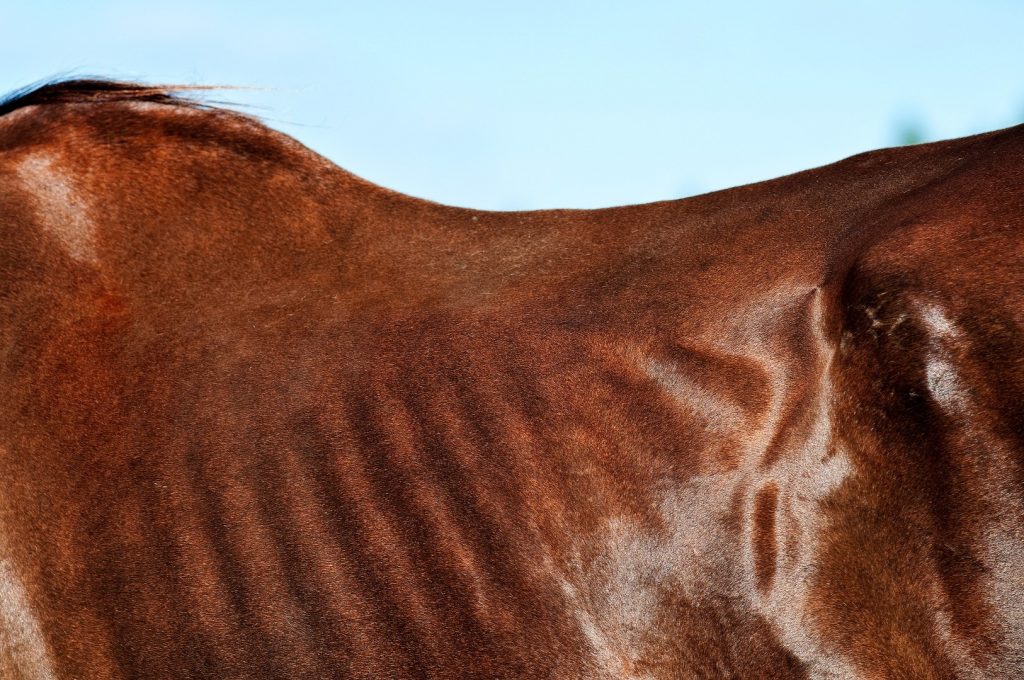 Cette mauvaise usure des dents crée en pratique des déchaussement et empêche le cheval de s’alimenter correctement : les aliments sont insuffisamment mastiqués en raison des problèmes dentaires sous-jacents. L’ingestion et la digestion est alors plus difficile, le système digestif ne parvenant plus à jouer son rôle correctement. Les besoins nutritionnels risquent alors de ne plus être couverts en totalité et en vieillissant les chevaux ont donc tendance à perdre du poids.